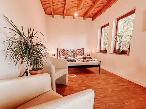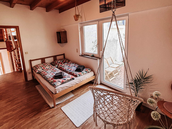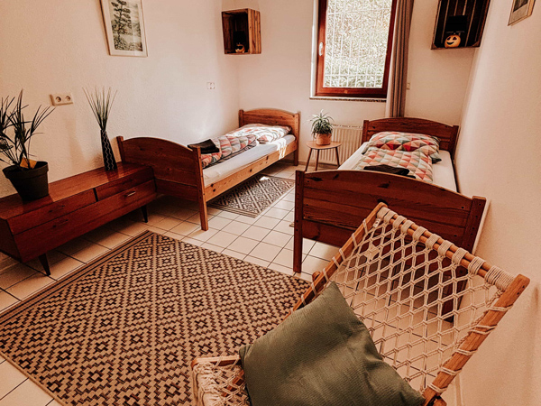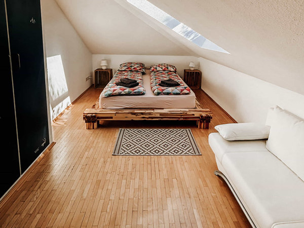 Unsere HostelVilla in Andernach bietet dir bis zu 20 Schlafplätze auf 300 qm und vier Etagen – ideal für Freunde, Familie oder Teams, egal ob als Einzelbuchung oder exklusive Anmietung. Hier genießt du absolute Ruhe inmitten der Natur und bist dennoch in unter einer Stunde in Köln, Bonn oder Koblenz.
